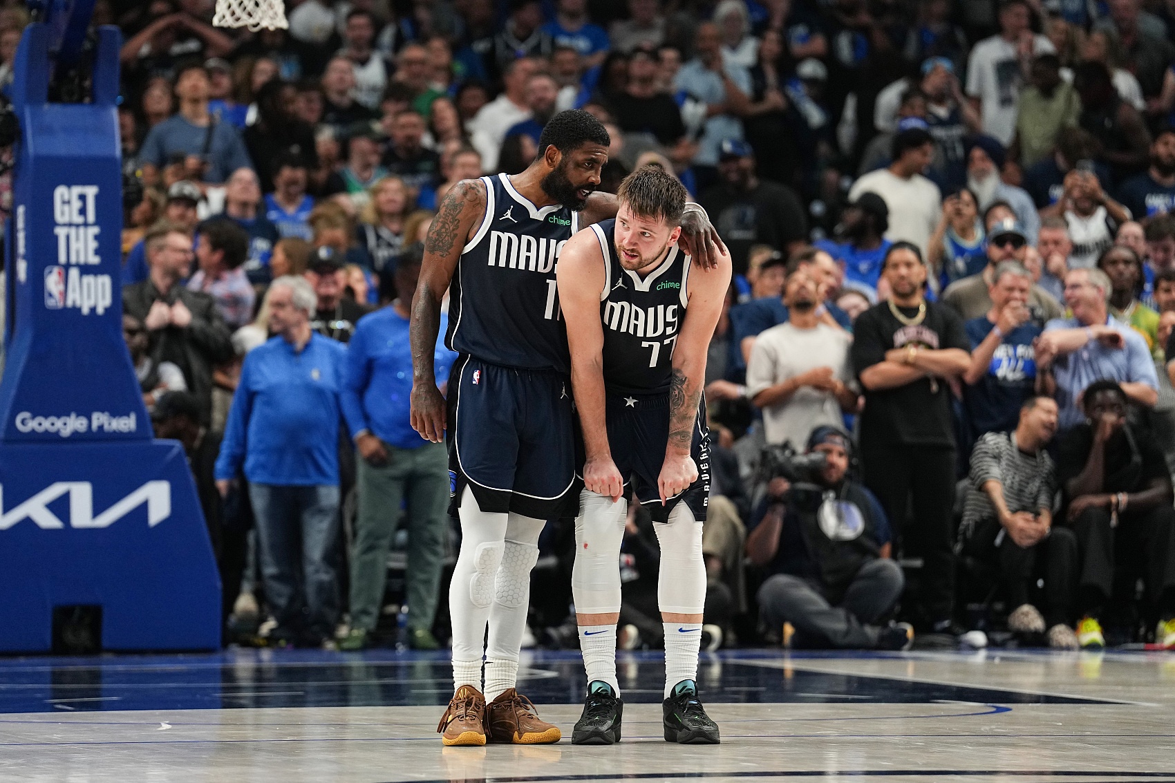 赛后,欧文接受了记者采访。他说道:“我们想念你(东契奇),兄弟。希望你在家里过得开心。这场胜利绝对是给他的。”