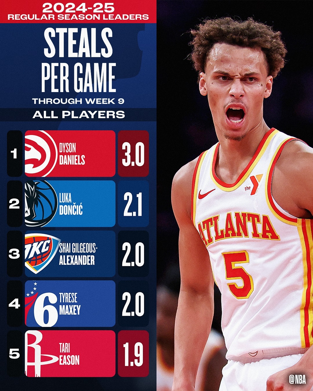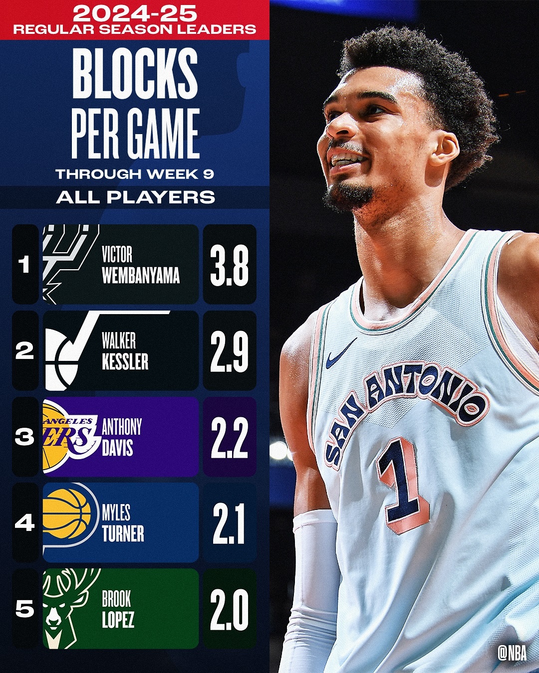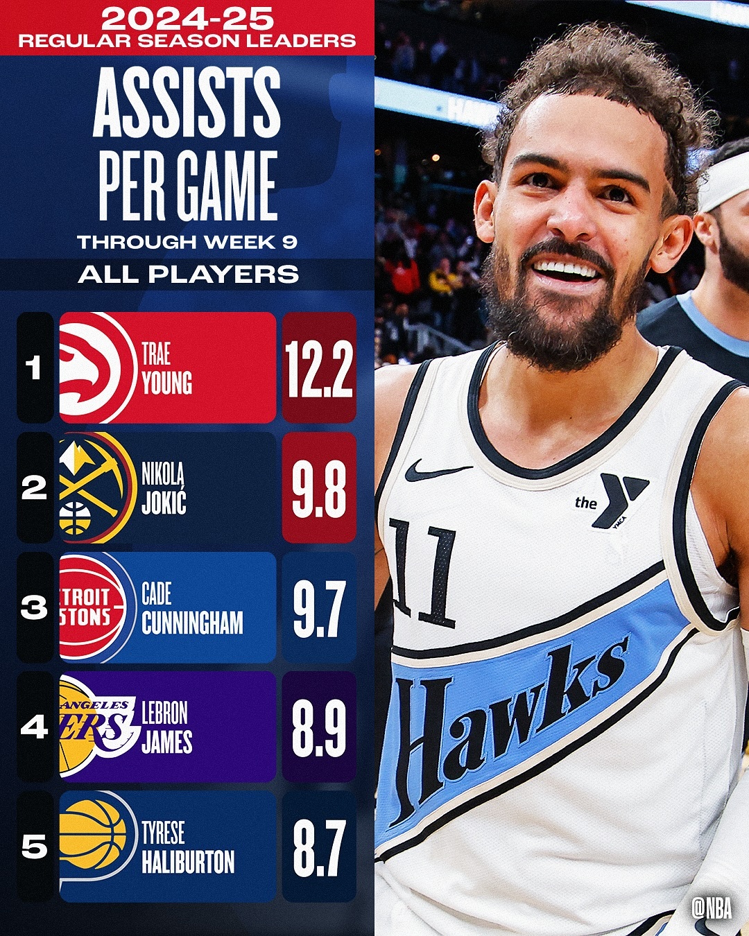 第9周数据榜:字母领跑得分王特雷杨断层领跑助攻文班盖帽亮眼