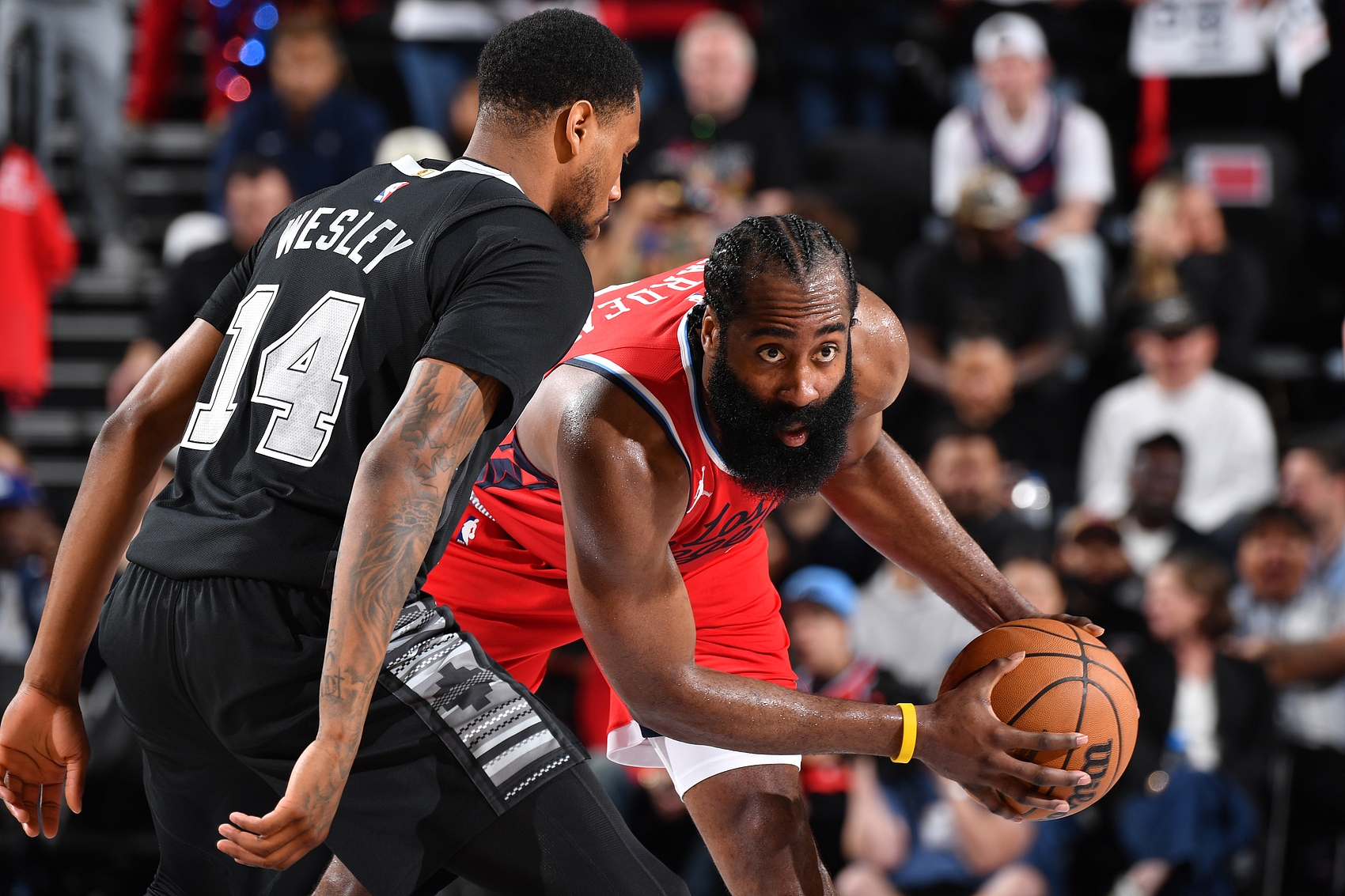 04月09日讯 NBA常规赛,快船主场122-117击败马刺,收获5连胜。本场比赛,哈登的表现一如既往的稳定,他首发出战37分49秒,17投8中,其中三分6中3,另外罚球3中2,砍下21分9篮板12助攻,正负值