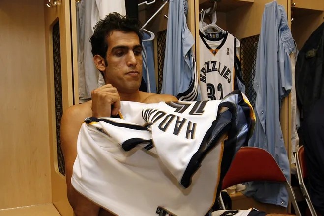 2009年,灰熊选中塔比特,和这位史上最水榜眼秀一起竞争,哈达迪依然占不到丝毫便宜,36场比赛场均1.7分、2.1个篮板,命中率低到38.7%,只有一场得分上双。哈达迪的经纪人给他找了不少理由,比如英语太差,离家太远,思乡心切,这些都影响了他的状态。此外,这位经纪人还找到一个刁钻的角度夸奖了客户——作为一个伊朗人,哈达迪给排名中游的灰熊队带来了很多媒体的关注。