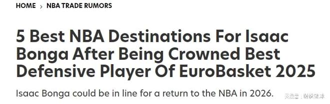 显然跟其他人一样,这位25岁的铁闸,也盼望有朝一日重返NBA联盟,毕竟这是所有职业球员终极梦想。而媒体撰写了一篇长文,直言回到湖人是艾萨克-邦加潜在选项,此外包括勇士和马刺等队,同样也很适合他。