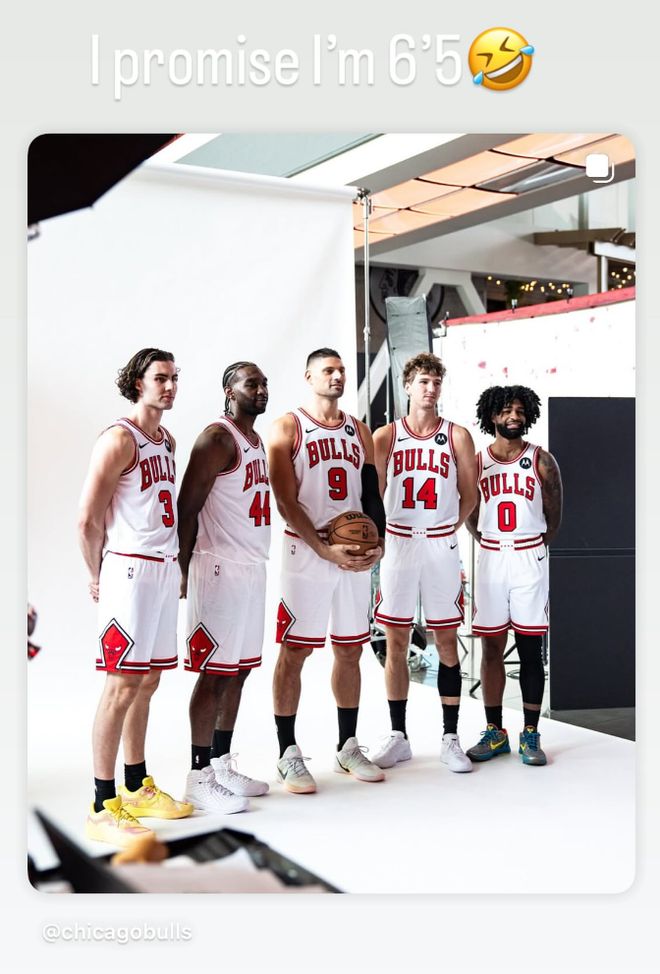 北京时间9月30日是NBA媒体日,芝加哥公牛队并不是流量球队所以没什么曝光率,科比-怀特的一则INS却引发了美国球迷的讨论,那就是定妆照合影时怀特说自己有6尺5寸(约1.95米),实际上他