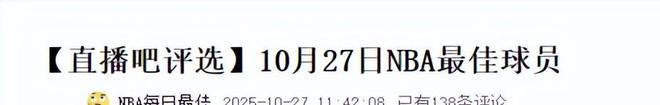 直播吧(【直播吧评选】10月27日NBA最佳球员2025.10.27)