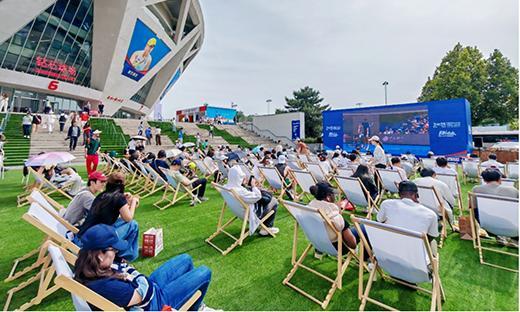 两位结伴而来的“00后”观众则表示,她们专门购买了场外票,只为逛快闪店。“没想到网球比赛这么有意思”,被观赛氛围感染,二人在休息区驻足观看了大半场比赛,并决定“明天再来”。