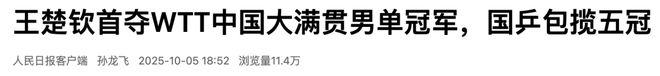 王楚钦首夺WTT中国大满贯男单冠军,国乒包揽五冠