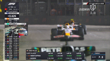 来到最后5圈的争夺,维斯塔潘和诺里斯的争夺依旧是全场的焦点!而皮亚斯特里也已经追到了诺里斯身后不远的距离。