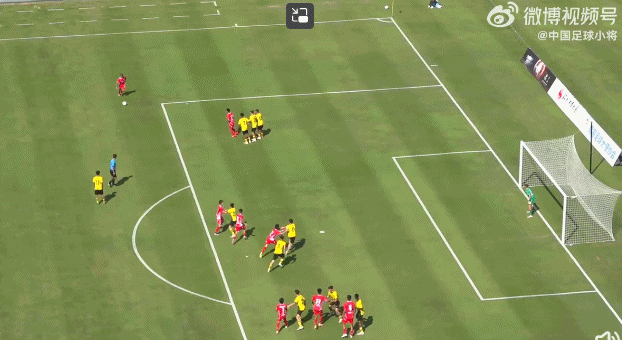 中国足球小将奉献了一个精彩的任意球配合破门!任意球发出后,中国足球小将多人协同跑位,埋伏在左侧的球员插上拿球,倒三角传球助队友完成破门!