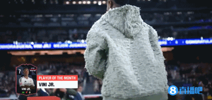 赛前维尼修斯入场展示自己的西甲月最佳奖杯。↓