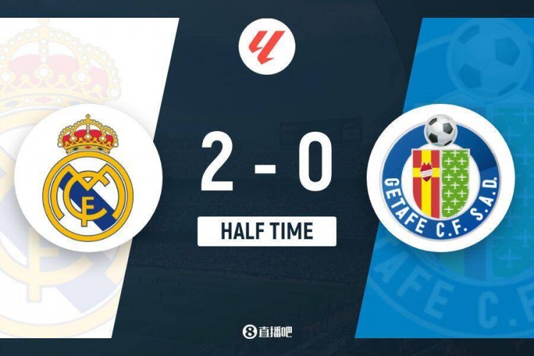 上半场比赛结束,皇家马德里2-0赫塔费。