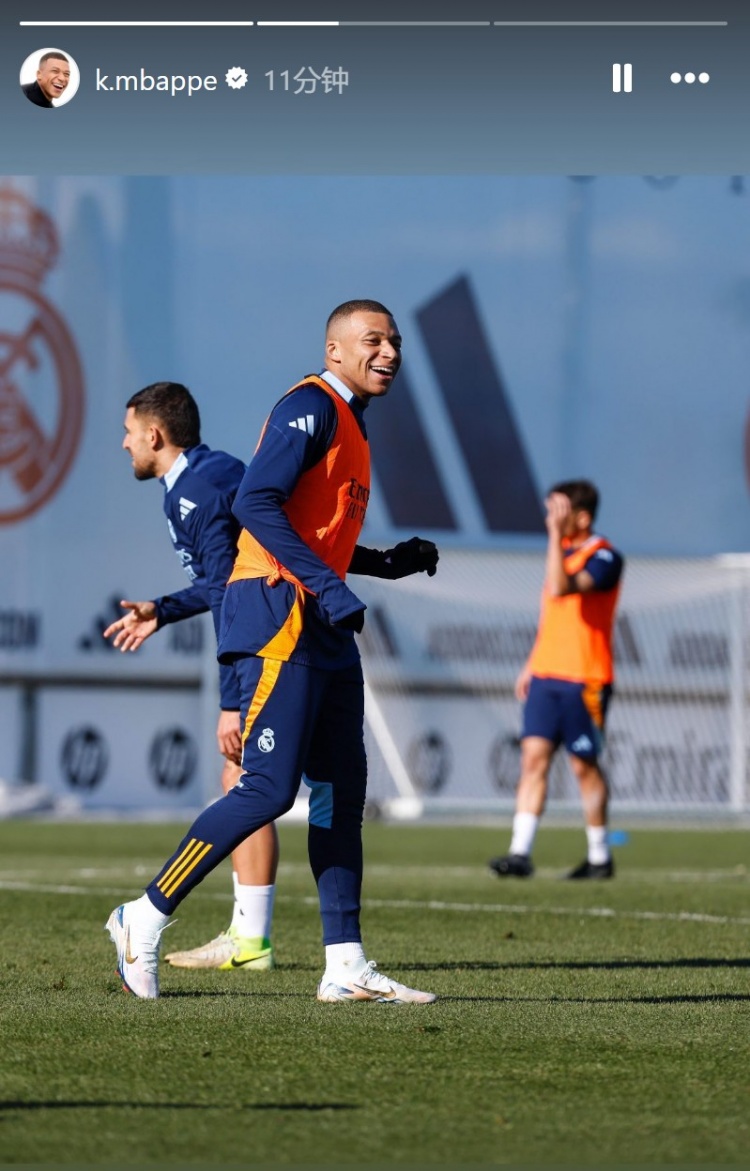 1月1日讯 北京时间本周六凌晨4:00,皇马将在西甲比赛中客战瓦伦西亚,球队正在进行备战。姆巴佩也更新了社媒,纪录2025年的第一堂训练课。姆巴佩晒出训练照,以及分组对抗赛中赢球小