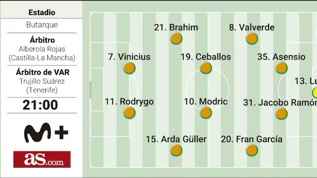 中场:布拉欣-迪亚斯、塞巴略斯、莫德里奇、居勒尔