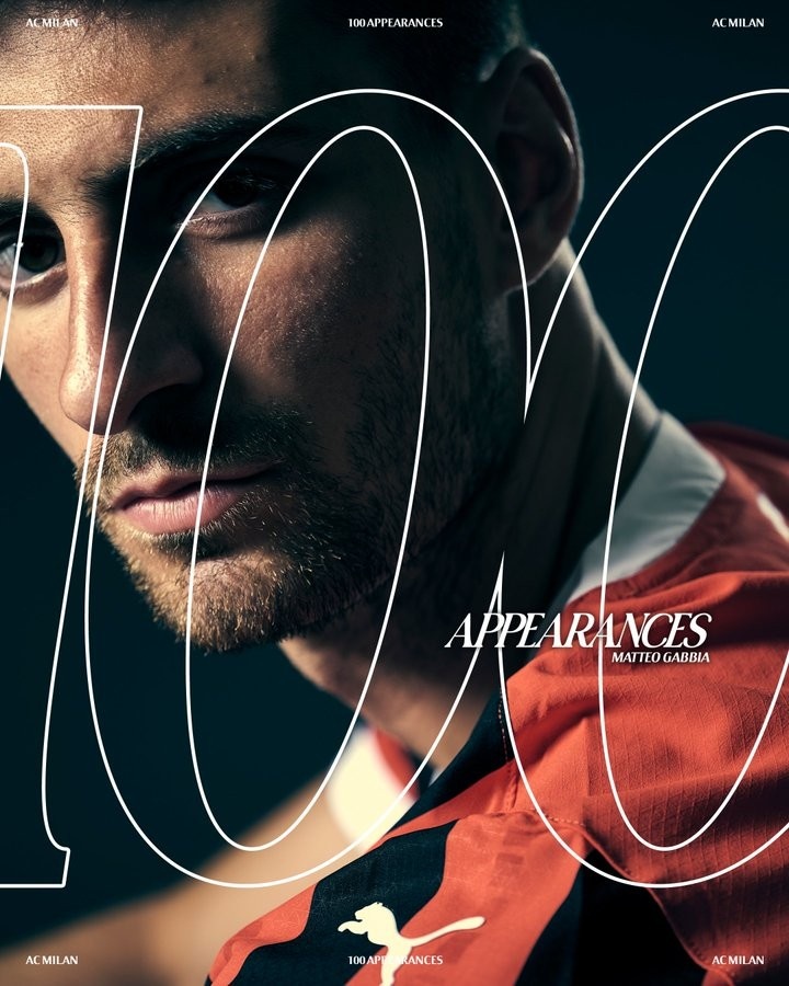 米兰官方统计显示,加比亚达成米兰生涯100场里程碑。