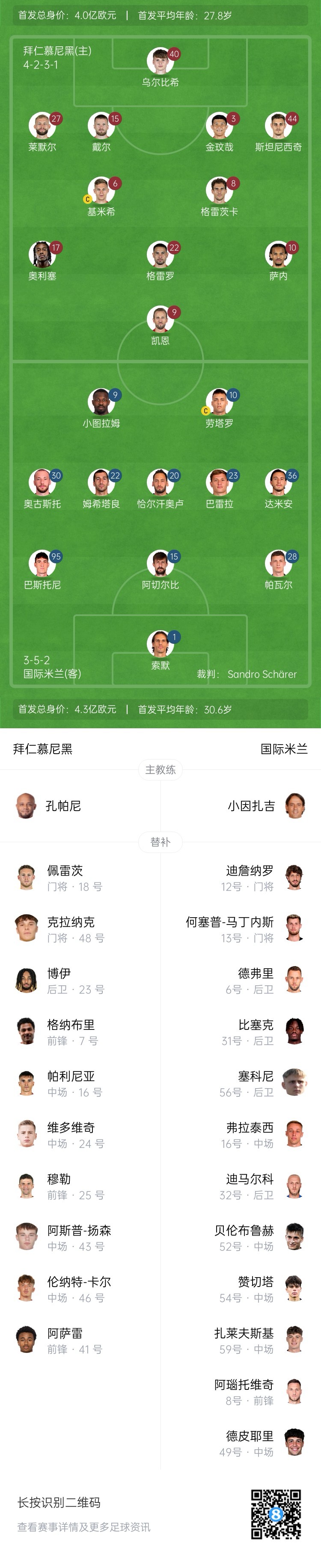 4月9日讯 欧冠8强首回合,拜仁主场迎战国米比赛即将打响。赛前首发出炉。