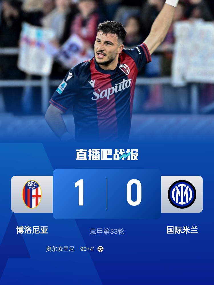 意甲第33轮战罢多场,国际米兰0-1不敌博洛尼亚,那不勒斯1-0击败蒙扎,两队现意甲同积71分。