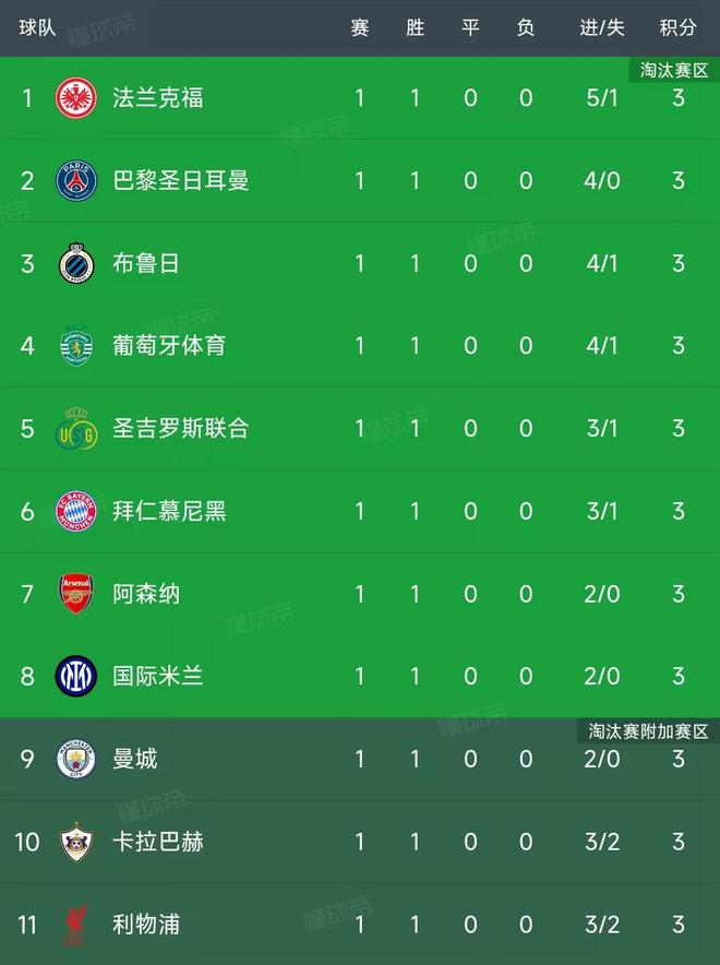 随着曼城20那不勒斯,巴萨21纽卡,欧冠第一轮最新积分榜如下!