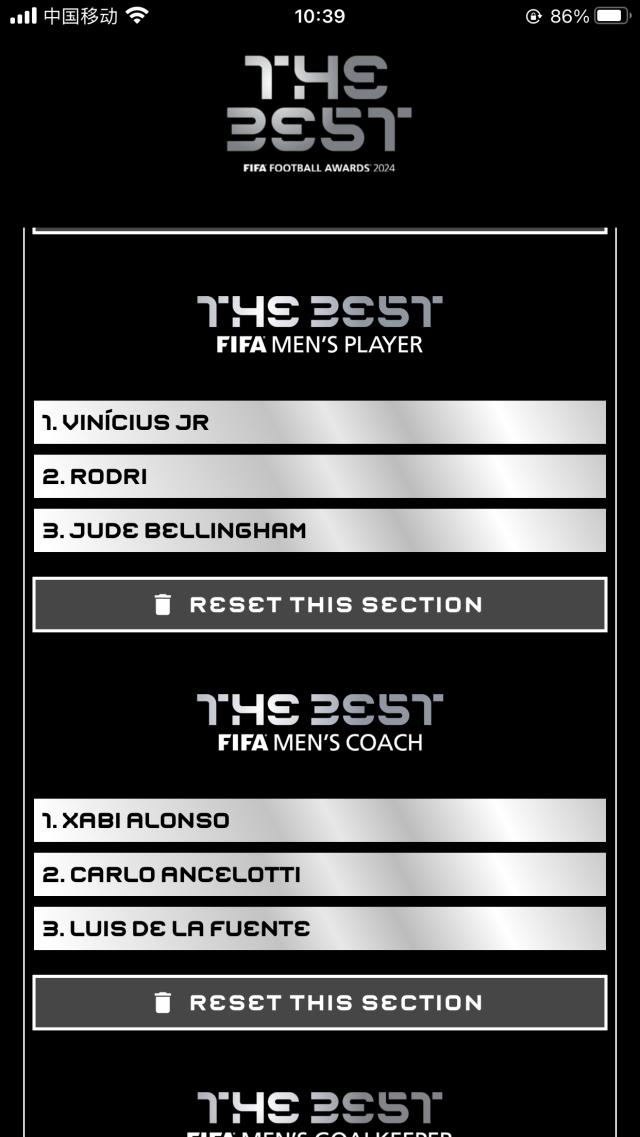 参加国际足联男足奖项投票以来,我的选择经常与最终结果相吻合。但今年非常遗憾,只有最佳球员的投票结果完全一致。
