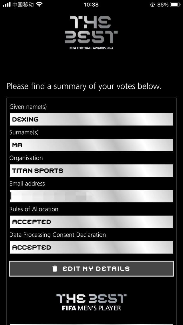 12月18日讯 2024FIFA最佳颁奖今日揭晓,维尼修斯当选最佳男足球员。中国区评审马德兴的投票与前三吻合,他发文介绍了本次投票的理由。