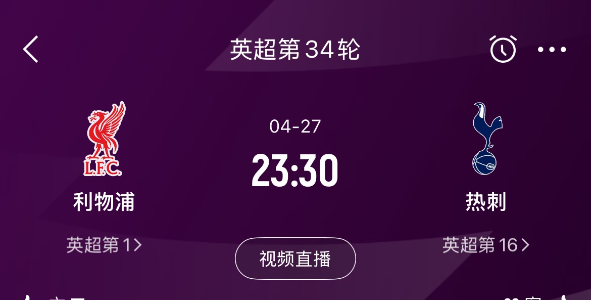利物浦下轮主场对阵热刺,取胜即可夺冠。此外,阿森纳下轮开赛(24号)早于利物浦,如果枪手输给水晶宫,利物浦赛前便可确定夺冠。