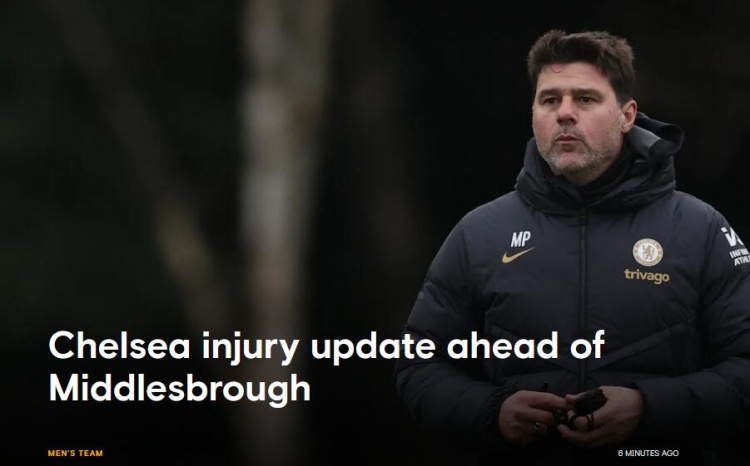 1月22日讯 切尔西将迎来对阵米德尔斯堡的英联杯半决赛次回合比赛,比赛时间为24日凌晨4时。今日,切尔西官方更新了队内伤员的情况,具体如下: