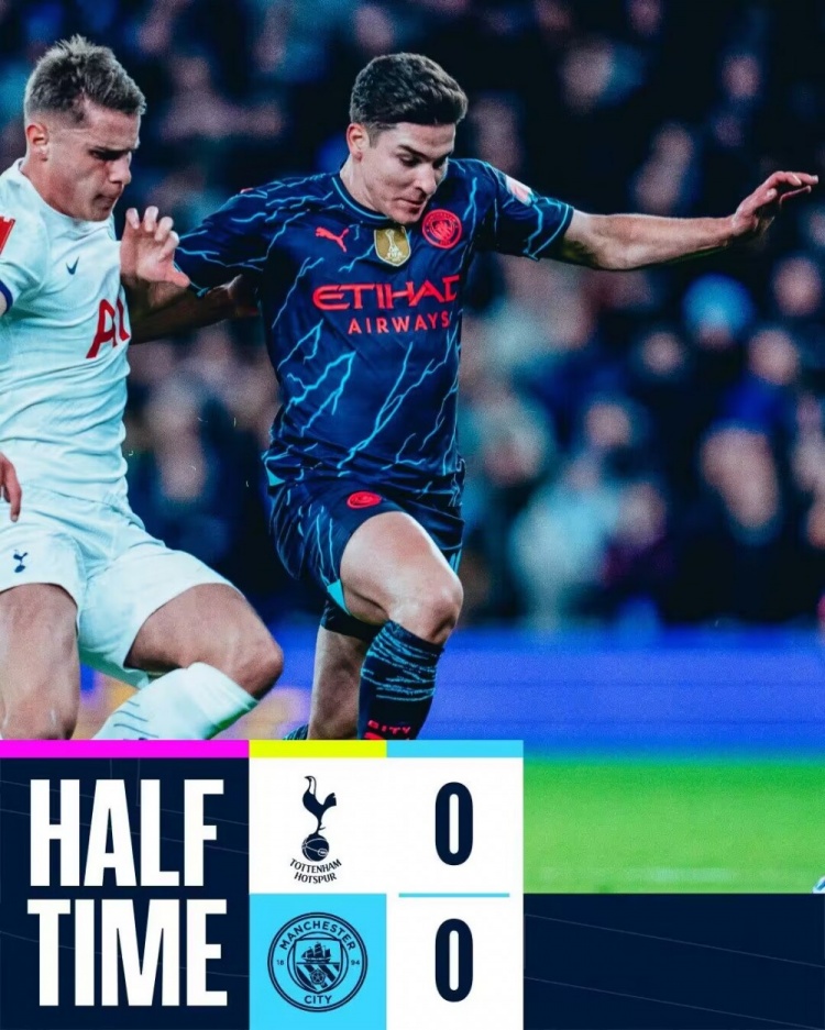 上半场补时6分钟。半场战罢,曼城暂0-0热刺。