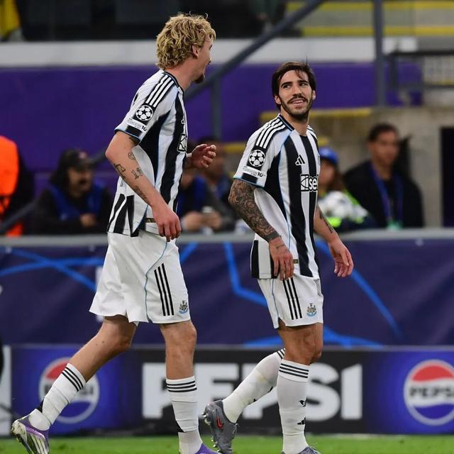更惊人的是,尽管戈登梅开二度,另一位纽卡球星的表现却更加抢镜。目前喜鹊阵中不乏可立足豪门的青年才俊,伊萨克已离队,但艾迪-豪又找到了新王牌,托纳利就是其中的代表。赛后,不少纽卡球迷直呼这位活力四射的意大利人“世界级”。他的射门被沃尔特马德巧妙一蹭变线入网,仅算为“助攻”远不足以概括其贡献。本赛季英超他场均3.7次夺回球权,此役欧冠又赢下4次对抗,彻底统治中路。