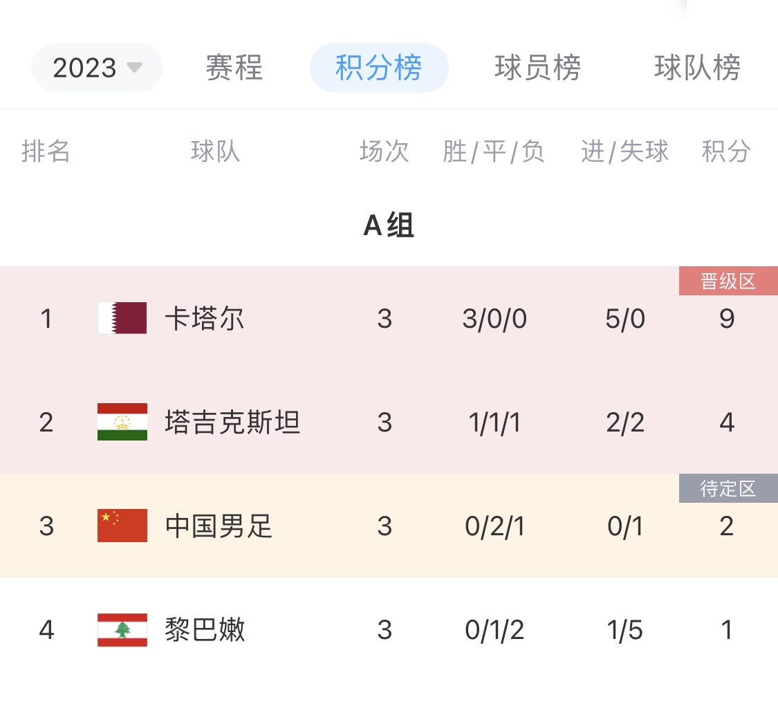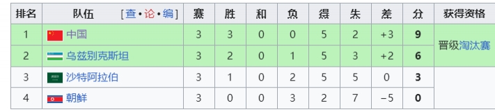 国足小组赛2平1负小组第三,进0球丢1球。